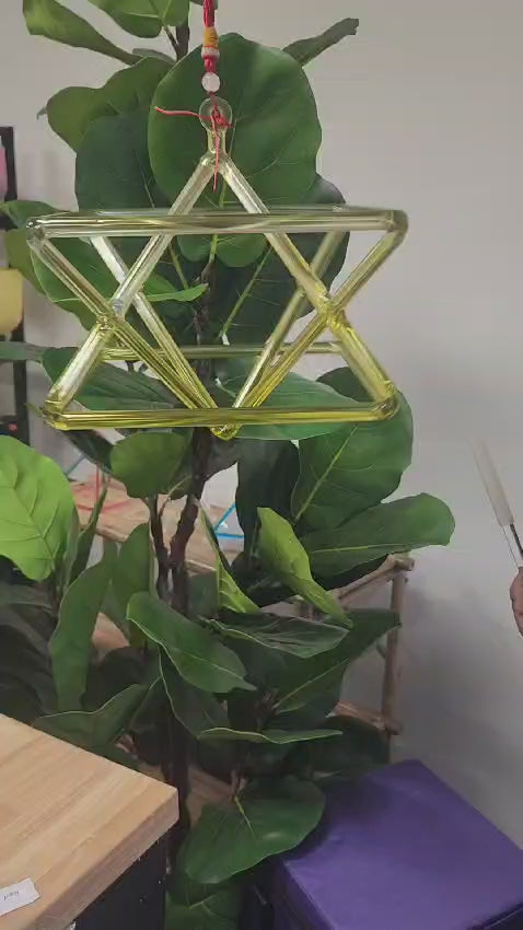 The Merkaba, a sacred geometry symbol, is known for its ability to activate energy fields, align spiritual vibrations, and connect the physical with the higher realms. When played, this 10-inch Gold Color Crystal Singing Merkaba emits soothing vibrations that deeply resonate within, encouraging a profound sense of peace and tranquility. Whether you're using it for personal healing, meditation, or to enhance your environment, this Merkaba serves as a dynamic tool for your spiritual practice.