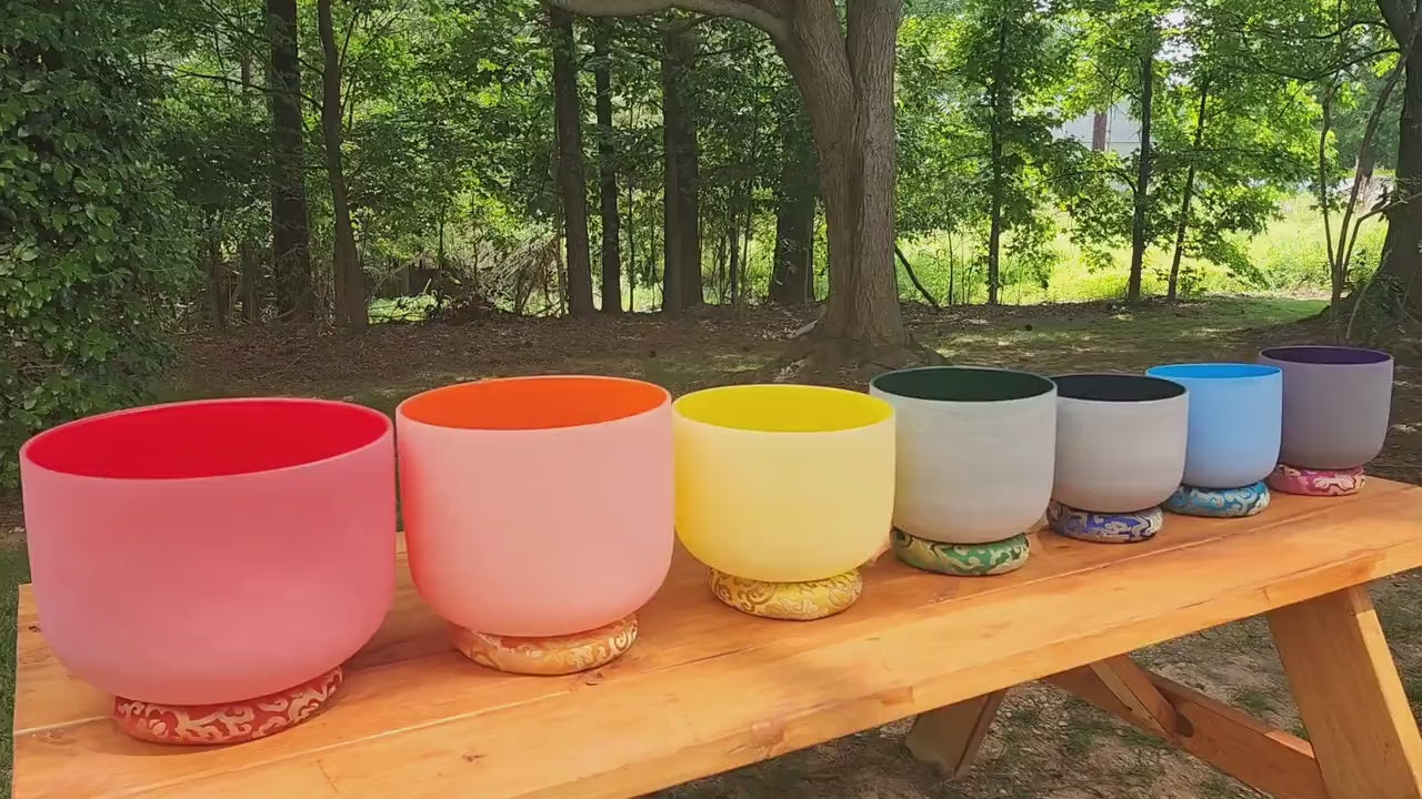 Welcome to our exquisite collection of 432Hz Perfect Pitch Chakra Color Crystal Singing Bowl Set! Immerse yourself in the harmonious frequencies and vibrant energies of these beautifully crafted instruments.