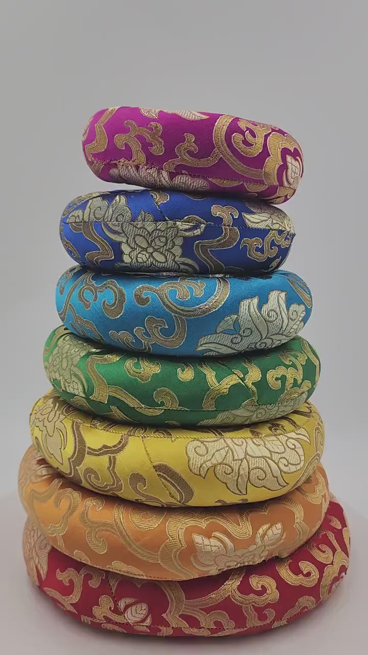 Chakra Coded Silk O-rings Brocade Cushion Set for Crystal/Tibetan Singing Bowls - 7 Colors