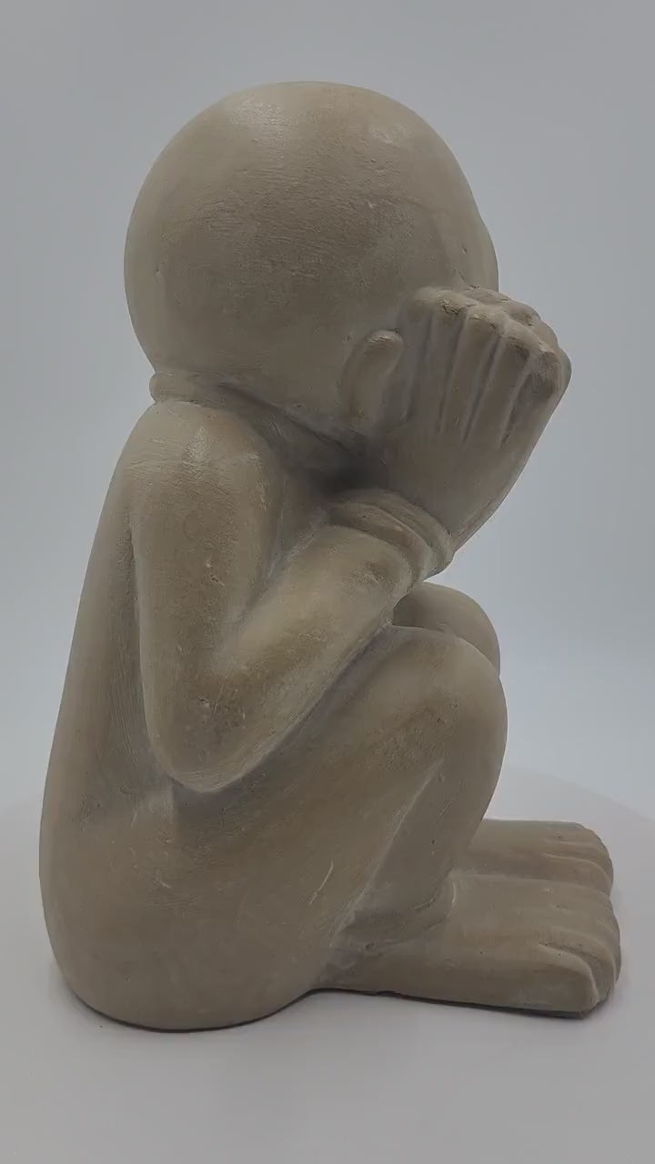 Carved from high-quality soapstone, this statue showcases a delightful portrayal of a child in a state of blissful reverie. With a serene smile on their face and eyes filled with wonder, the statue exudes a sense of tranquility and pure happiness. The antique finish adds a touch of nostalgia and character, giving the piece a timeless appeal.